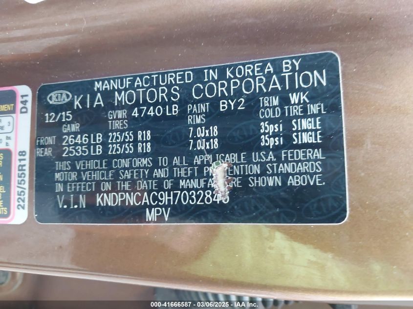 Color BrownCylinders 4Drive Full driveVIN KNDPNCAC9H7******State Run & Drive VerifiedDamage Front or back AutoRIA