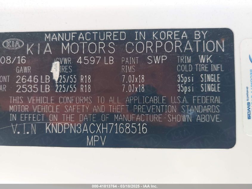 Color WhiteCylinders 4Drive Front wheel driveVIN KNDPN3ACXH7******State Run & Drive VerifiedDamage Front or back AutoRIA