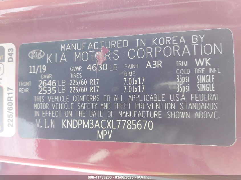 Color RedCylinders 4Drive Front wheel driveVIN KNDPM3ACXL7******State Run & Drive VerifiedDamage Front or back AutoRIA