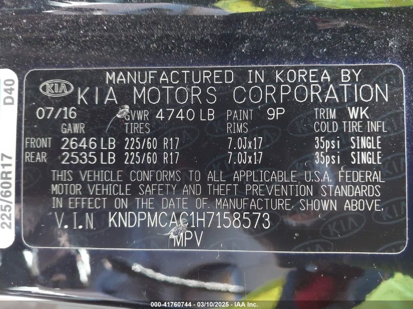 Color BlackCylinders 4Drive Full driveVIN KNDPMCAC1H7******State Run & Drive VerifiedDamage Front left AutoRIA