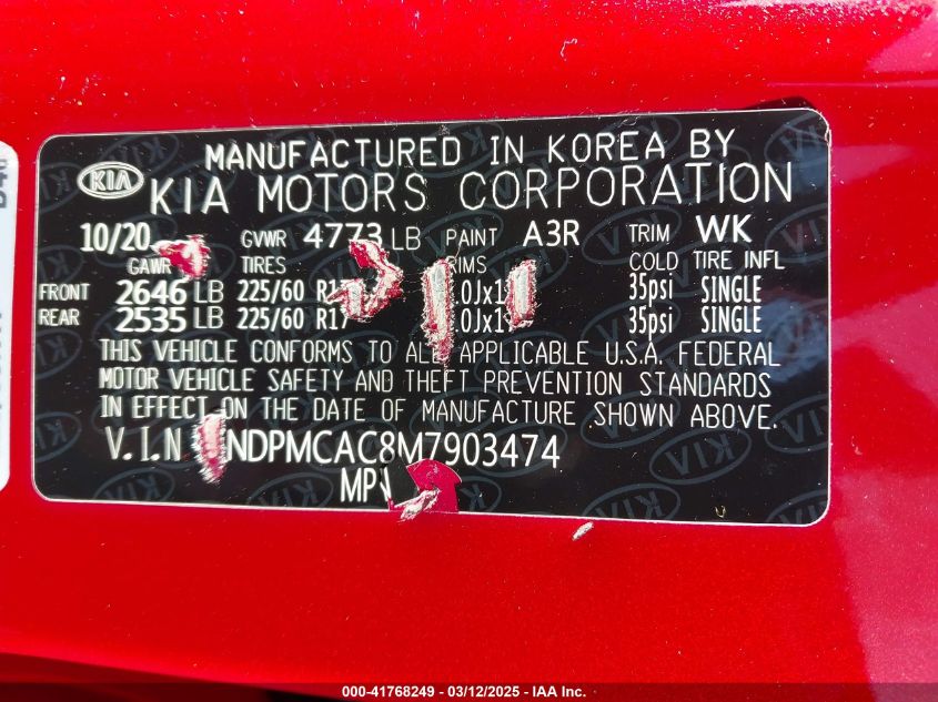 Color RedCylinders 4Drive Full driveVIN KNDPMCAC8M7******State Run & Drive VerifiedDamage Front or back AutoRIA