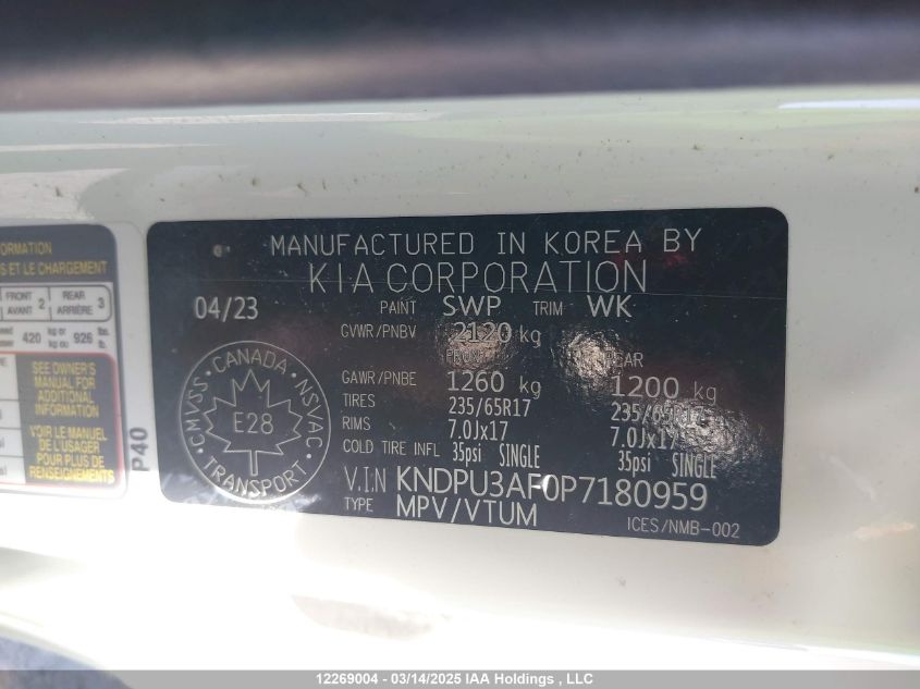 Color WhiteCylinders 4Drive UnknownVIN KNDPU3AF0P7******State Run & Drive VerifiedDamage FrontAuction date 2025-03-20 AutoRIA