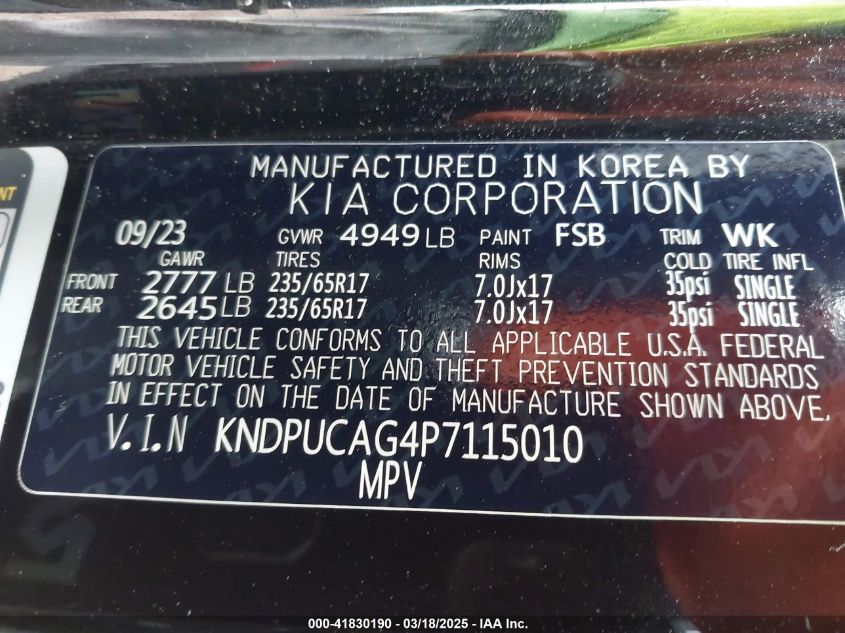 Color BlackCylinders 4Drive Full driveVIN KNDPUCAG4P7******State Run & Drive VerifiedDamage Front and back AutoRIA