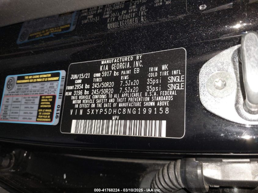 Color BlackCylinders 6Drive Full driveVIN 5XYP5DHC8NG******State Run & Drive VerifiedDamage Front or back
