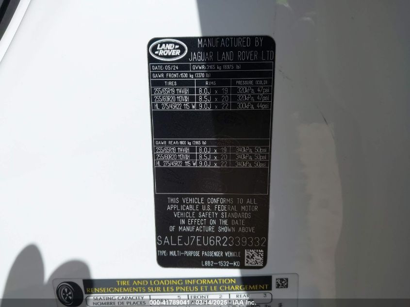 Color WhiteCylinders 6Drive Full driveVIN SALEJ7EU6R2******State Run & Drive VerifiedDamage Roof AutoRIA