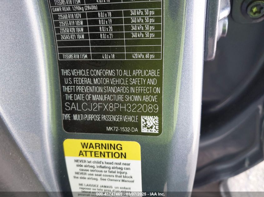 Color BlueCylinders 4Drive Full driveVIN SALCJ2FX8PH******State Run & Drive VerifiedDamage Rear right AutoRIA