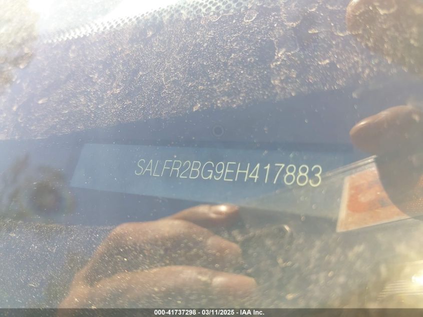 Color BlackCylinders 4Drive Full driveVIN SALFR2BG9EH******State Run & Drive VerifiedDamage Left side