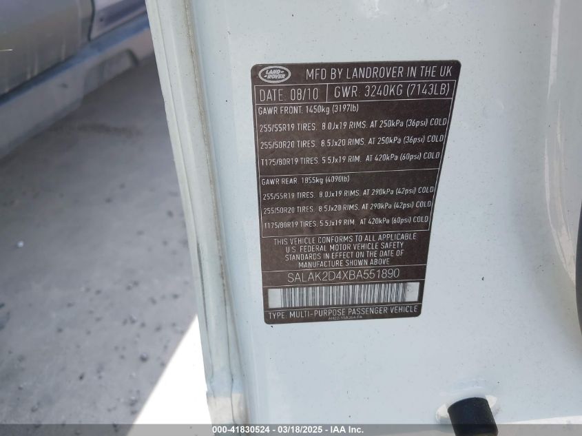 Color WhiteCylinders 8Drive Full driveVIN SALAK2D4XBA******State Run & Drive VerifiedDamage Insignificant