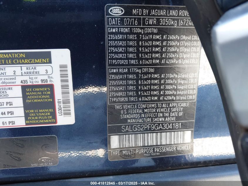 Color BlueCylinders 6Drive Full driveVIN SALGS2PF9GA******State Run & Drive VerifiedDamage InsignificantAuction date 2025-03-20 AutoRIA
