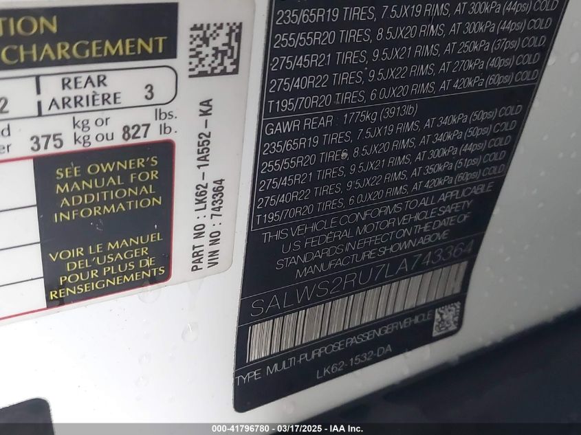 2020 LAND ROVER RANGE ROVER SPORT 2020 Gasoline, 3.0, Full drive, VIN - SALWS2RU7LA****** from the USA