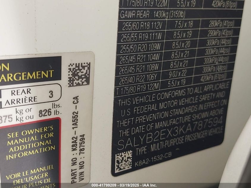 Color WhiteCylinders 4Drive Full driveVIN SALYB2EX3KA******State Run & Drive VerifiedDamage Front or back AutoRIA