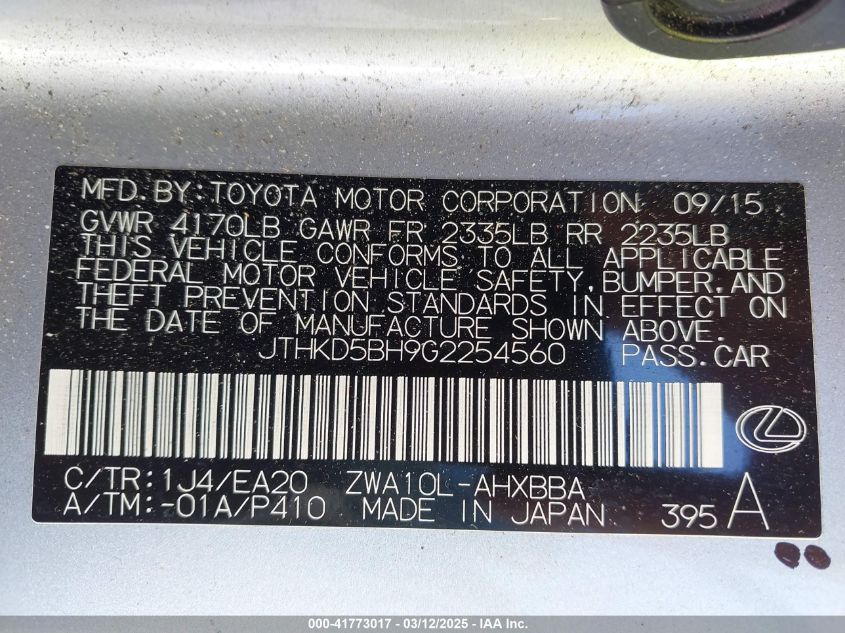2016 LEXUS CT 200H 2016 Hybrid, 1.8, Front wheel drive, VIN - JTHKD5BH9G2****** from the USA