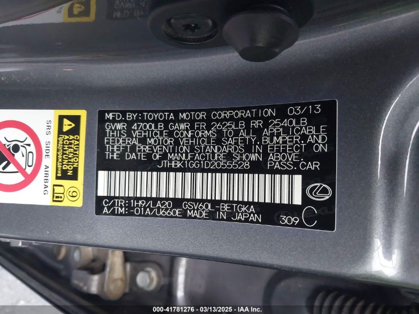 2013 LEXUS ES 350 2013 Gasoline, 3.5, Front wheel drive, VIN - JTHBK1GG1D2****** from the USA