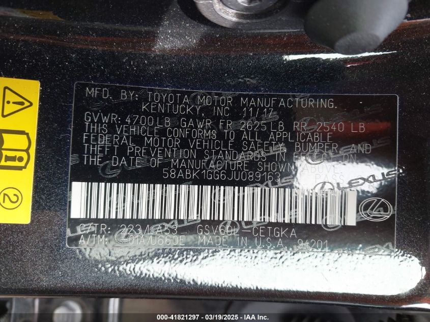 2018 LEXUS ES 350 2018 Gasoline, 3.5, Front wheel drive, VIN - 58ABK1GG6JU****** from the USA
