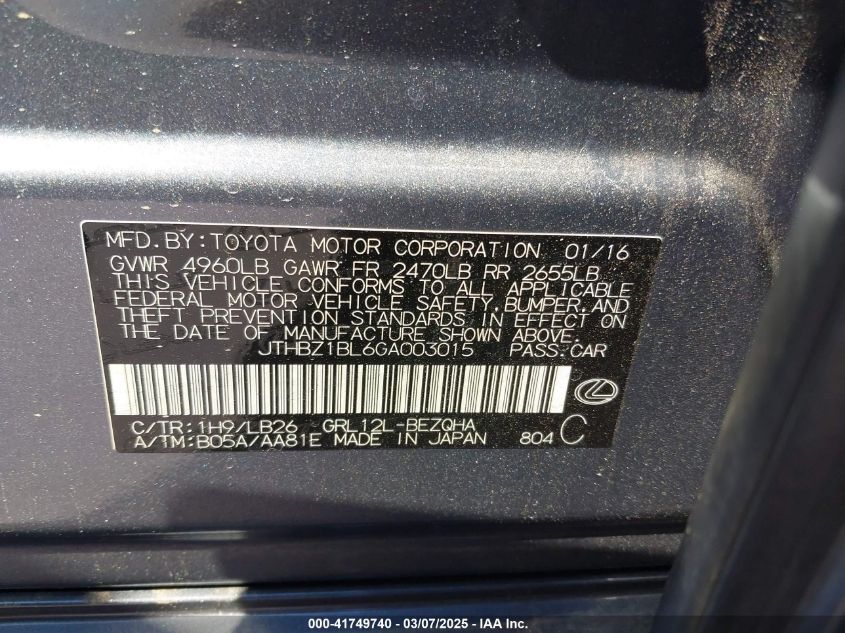 Color GrayCylinders 6Drive Rear wheel driveVIN JTHBZ1BL6GA******State Run & Drive VerifiedDamage Engine fireAuction date 2025-03-26 AutoRIA