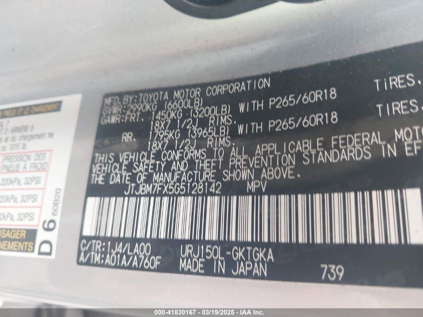Color SilverCylinders 8Drive Full driveVIN JTJBM7FX5G5******State Run & Drive VerifiedDamage Front or back AutoRIA