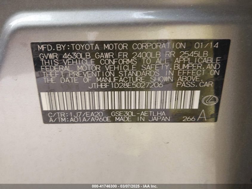 Color GrayCylinders 6Drive Rear wheel driveVIN JTHBF1D28E5******State Run & Drive VerifiedDamage BackAuction date 2025-03-20 AutoRIA
