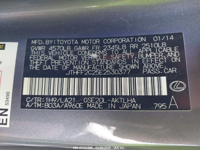 Color GrayCylinders 6Drive Rear wheel driveVIN JTHFF2C25E2******State Run & Drive VerifiedDamage Front or back