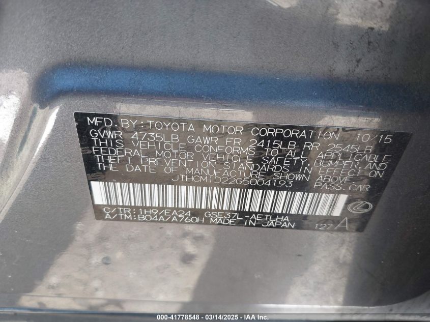 Color GrayCylinders 6Drive Full driveVIN JTHCM1D22G5******State Run & Drive VerifiedDamage Front or backAuction date 2025-03-25