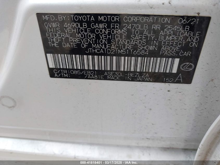 Color WhiteCylinders 4Drive Rear wheel driveVIN JTHCA1D21M5******State Run & Drive VerifiedDamage Front and back AutoRIA