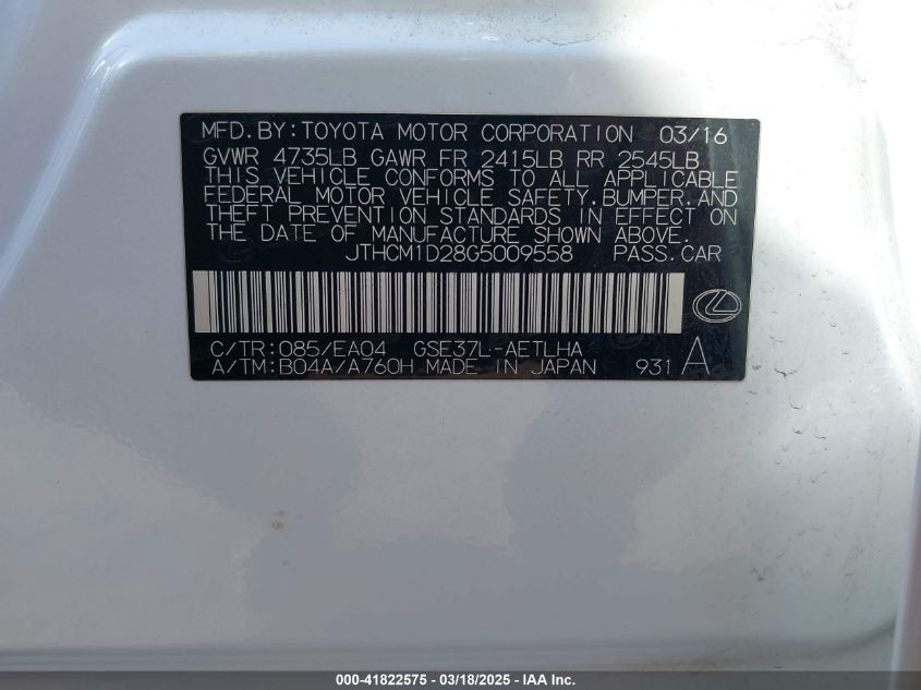 2016 LEXUS IS 300 2016 Gasoline, 3.5, Full drive, VIN - JTHCM1D28G5****** from the USA