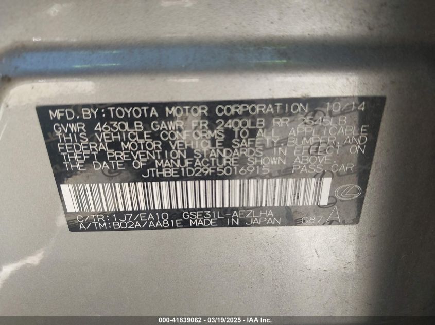 Color SilverCylinders 6Drive Rear wheel driveVIN JTHBE1D29F5******State Run & Drive VerifiedDamage Front or back AutoRIA