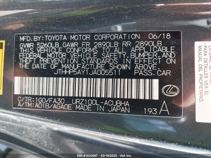 Color GrayCylinders 8Drive Rear wheel driveVIN JTHHP5AY1JA******State Run & Drive VerifiedDamage All over the car AutoRIA