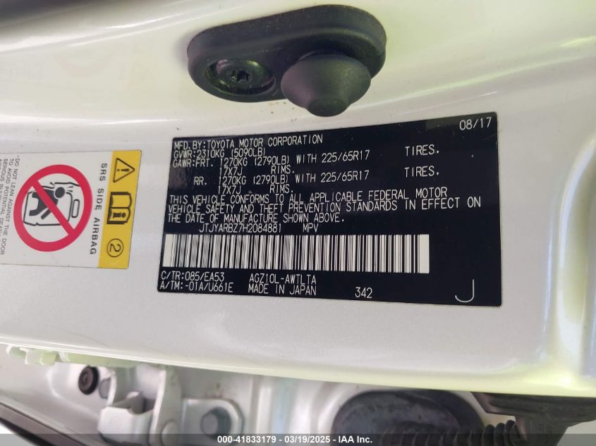 Color WhiteCylinders 4Drive Front wheel driveVIN JTJYARBZ7H2******State Run & Drive VerifiedDamage Front or back AutoRIA