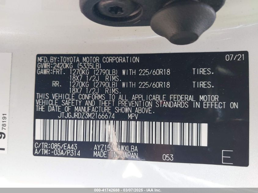 2021 LEXUS NX 300H 2021 Hybrid, 2.5, Full drive, VIN - JTJGJRDZ3M2****** from the USA