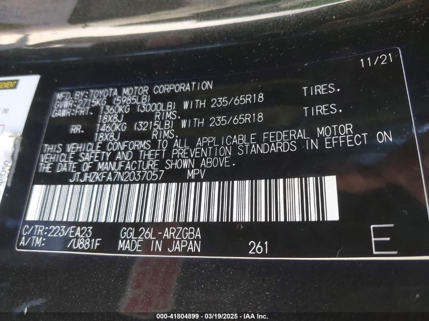 Color BlackCylinders 6Drive Full driveVIN JTJHZKFA7N2******State Run & Drive VerifiedDamage Front right AutoRIA