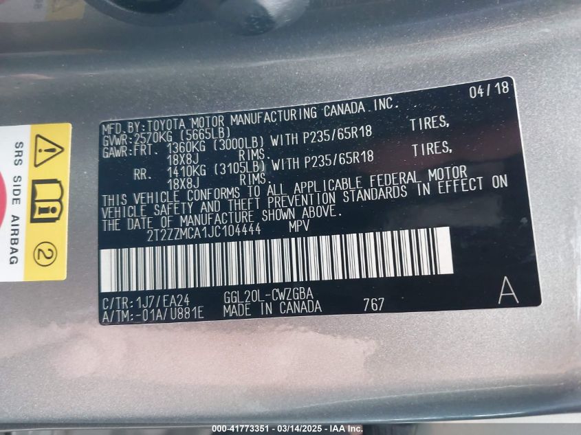 Color SilverCylinders 6Drive Front wheel driveVIN 2T2ZZMCA1JC******State Run & Drive VerifiedDamage Front or back AutoRIA