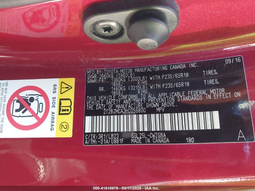 Color RedCylinders 6Drive Full driveVIN 2T2BZMCA3HC******State Run & Drive VerifiedDamage Front or back AutoRIA