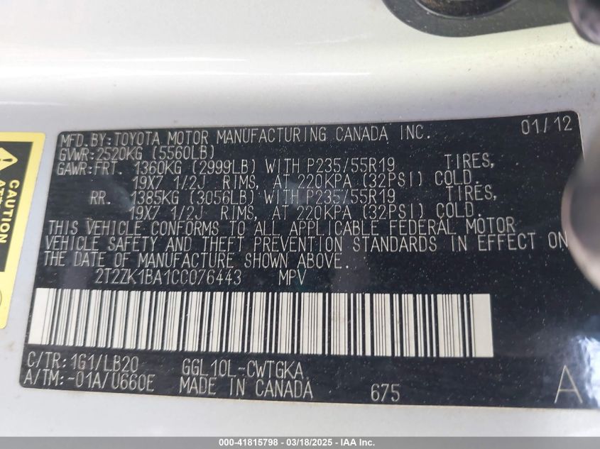 Color SilverCylinders 6Drive Front wheel driveVIN 2T2ZK1BA1CC******State Run & Drive VerifiedDamage Front or backAuction date 2025-03-26 AutoRIA