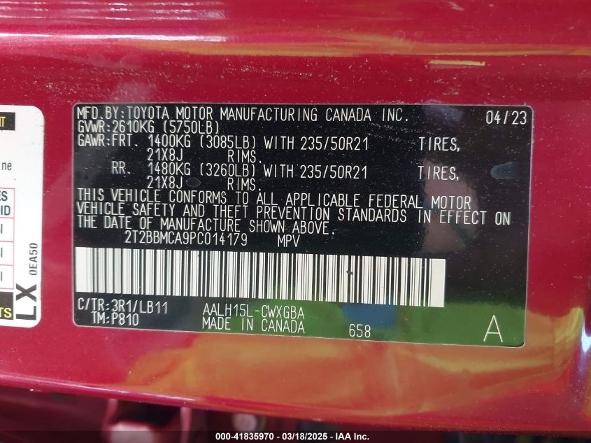 Color RedCylinders 4Drive Full driveVIN 2T2BBMCA9PC******State Run & Drive VerifiedDamage Front or backAuction date 2025-03-26 AutoRIA