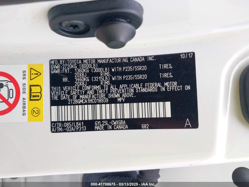 Color WhiteCylinders 6Drive Full driveVIN 2T2BGMCA1HC******State Run & Drive VerifiedDamage Front or back AutoRIA