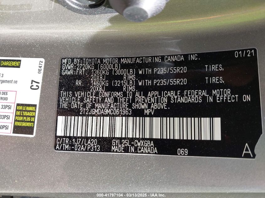 2021 LEXUS RX 450H 2021 Hybrid, 3.5, Full drive, VIN - 2T2JGMDA9MC****** from the USA