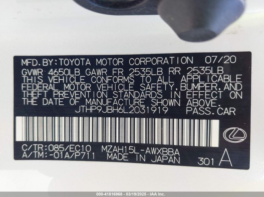 2020 LEXUS UX 250H 2020 Hybrid, 2.0, Full drive, VIN - JTHP9JBH6L2****** from the USA
