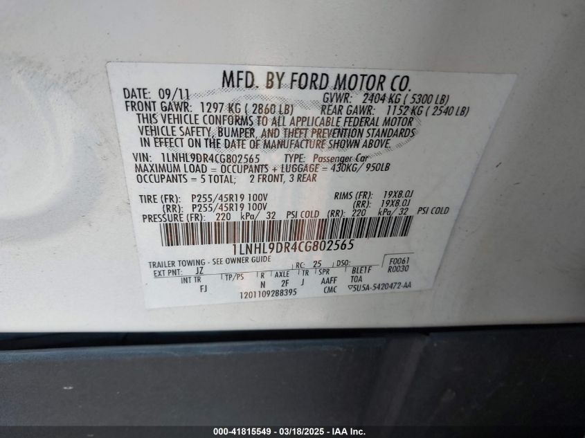 Color WhiteCylinders 6Drive Front wheel driveVIN 1LNHL9DR4CG******State Run & Drive VerifiedDamage Front or back AutoRIA