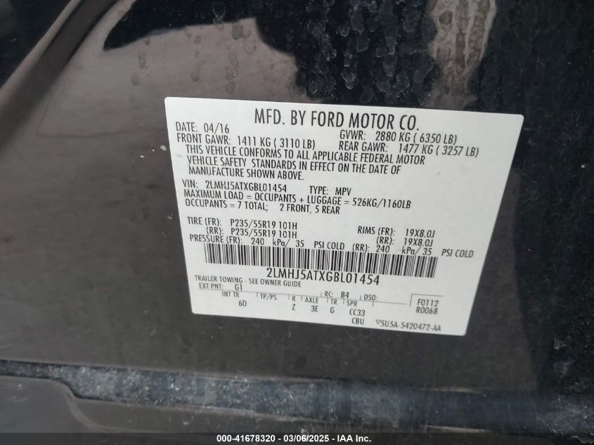 2016 LINCOLN MKT 2016 Gasoline, 3.5, Full drive, VIN - 2LMHJ5ATXGB****** from the USA