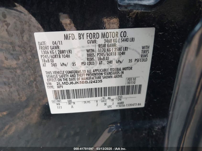 2011 LINCOLN MKX 2011 Gasoline, 3.7, Front wheel drive, VIN - 2LMDJ6JK5BB****** from the USA