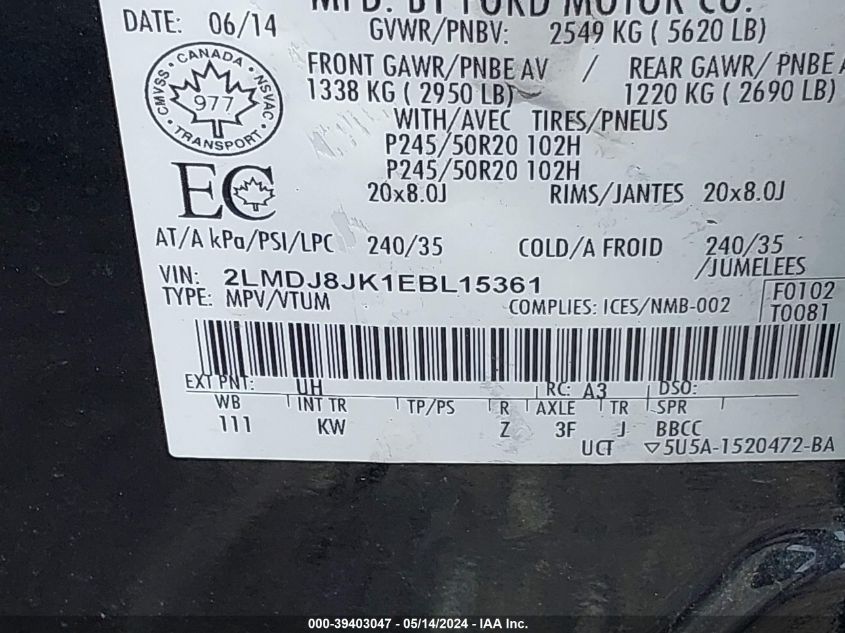 Color BlackCylinders 6Drive Full driveVIN 2LMDJ8JK1EB******State Run & Drive VerifiedDamage Front or back