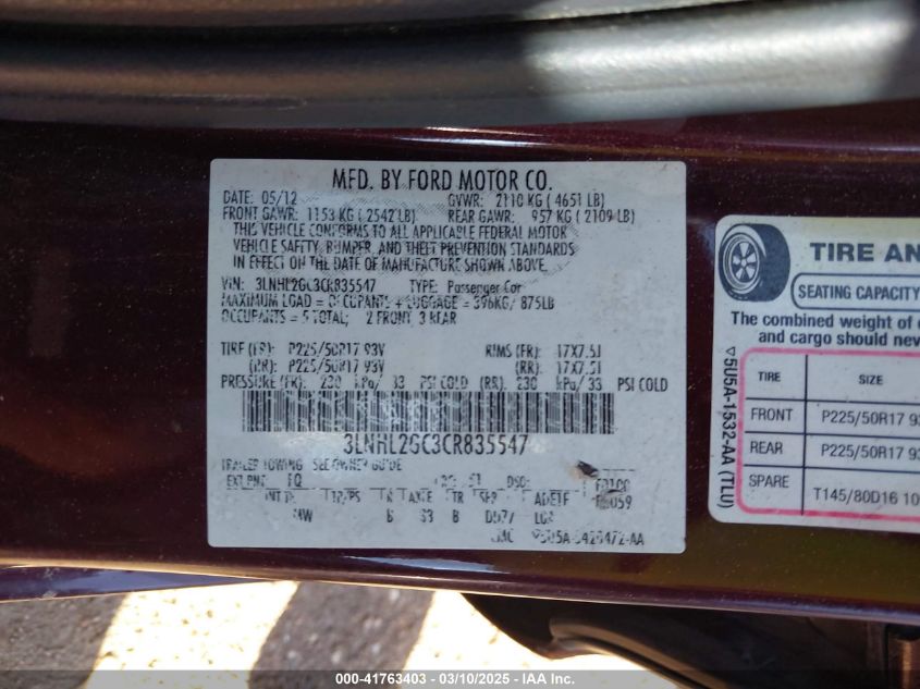 2012 LINCOLN MKZ 2012 Gasoline, 3.5, Front wheel drive, VIN - 3LNHL2GC3CR****** from the USA