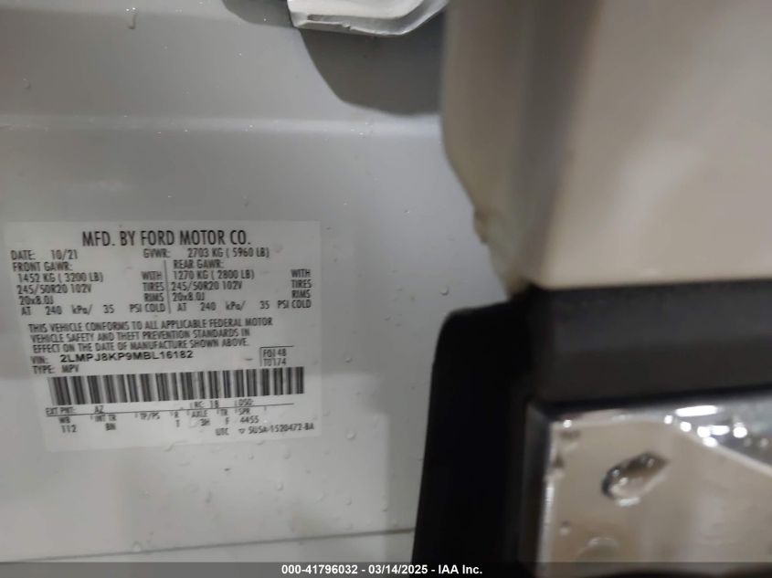 Color WhiteCylinders 6Drive Full driveVIN 2LMPJ8KP9MB******State Run & Drive VerifiedDamage Back AutoRIA