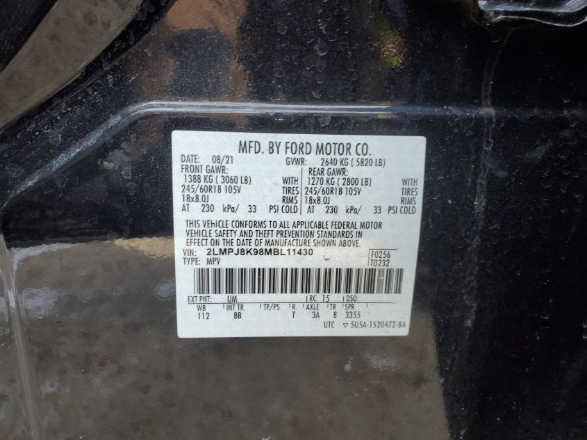 2021 LINCOLN NAUTILUS 2021 Gasoline, 2.0, Full drive, VIN - 2LMPJ8K98MB****** from the USA