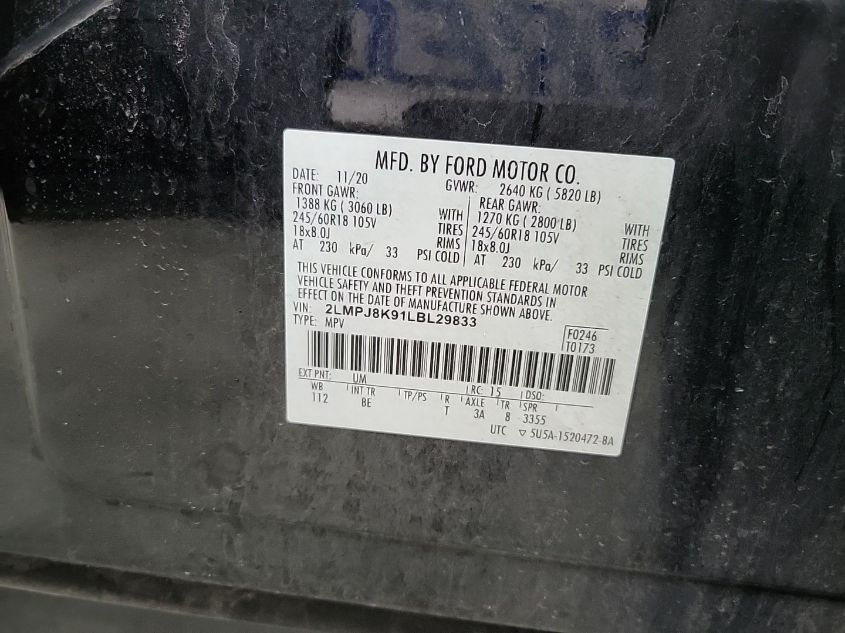 2020 LINCOLN NAUTILUS 2020 Gasoline, 2.0, Full drive, VIN - 2LMPJ8K91LB****** from the USA