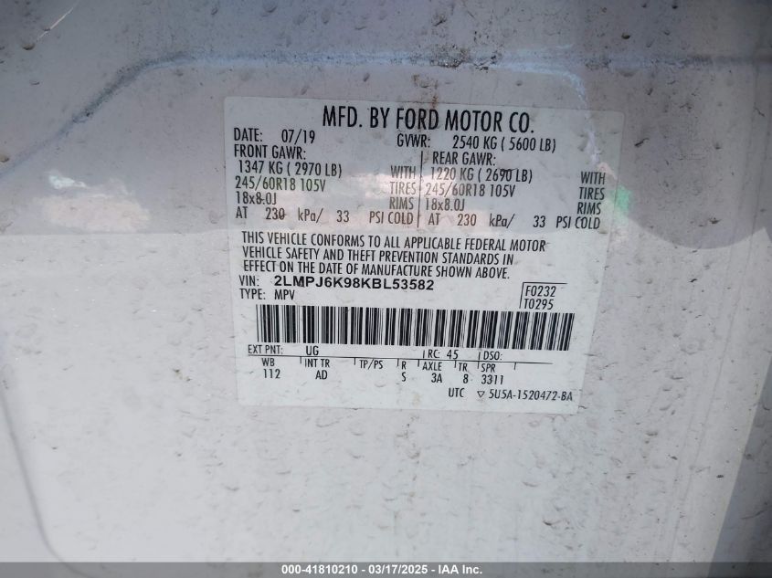 2019 LINCOLN NAUTILUS 2019 Gasoline, 2.0, Front wheel drive, VIN - 2LMPJ6K98KB****** from the USA