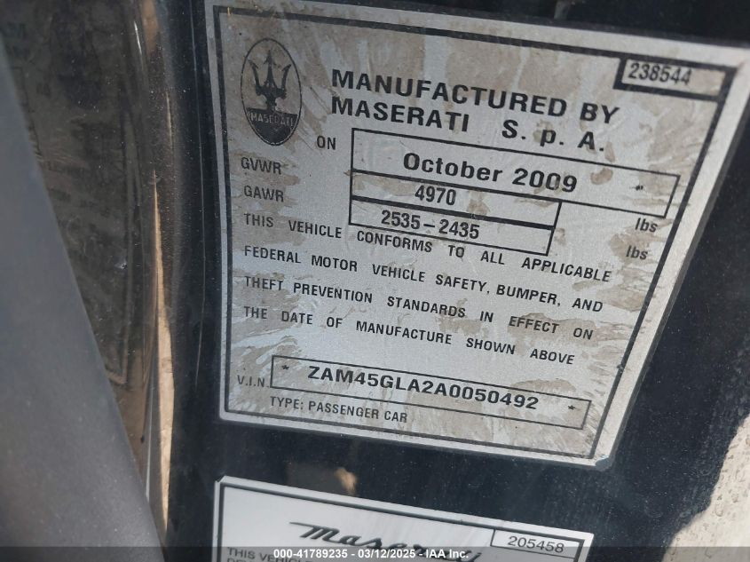 2010 MASERATI GRANTURISMO 2010 Gasoline, 4.2, Rear wheel drive, VIN - ZAM45GLA2A0****** from the USA