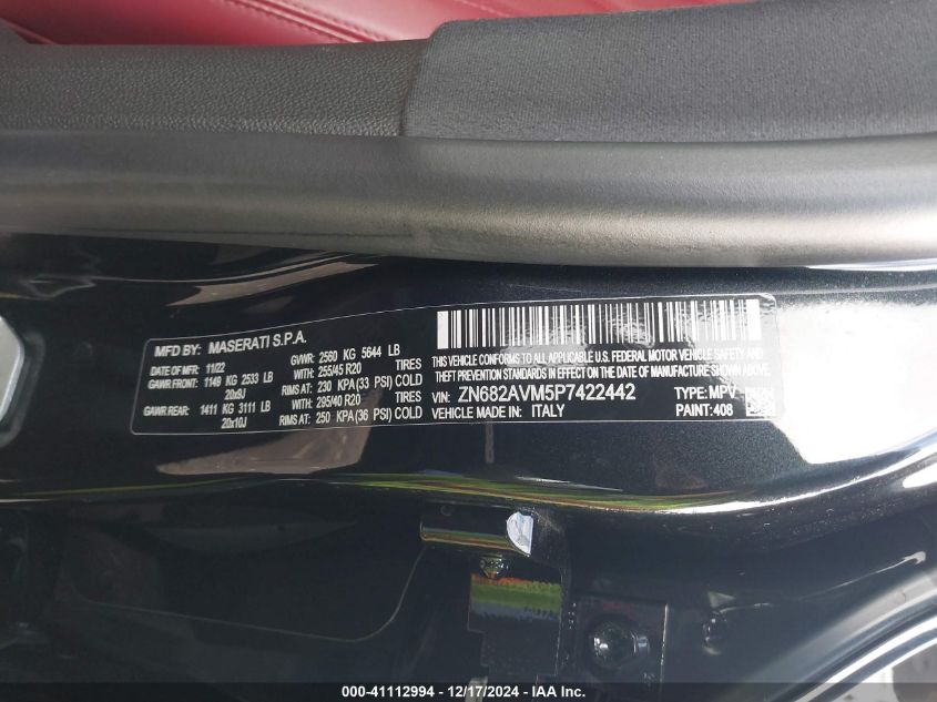 2023 MASERATI GRECALE 2023 Gasoline, 2.0, Full drive, VIN - ZN682AVM5P7****** from the USA