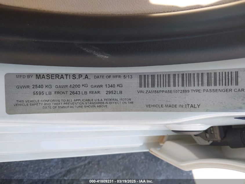 Color WhiteCylinders 8Drive Rear wheel driveVIN ZAM56PPA5E1******State Run & Drive VerifiedDamage Left side AutoRIA