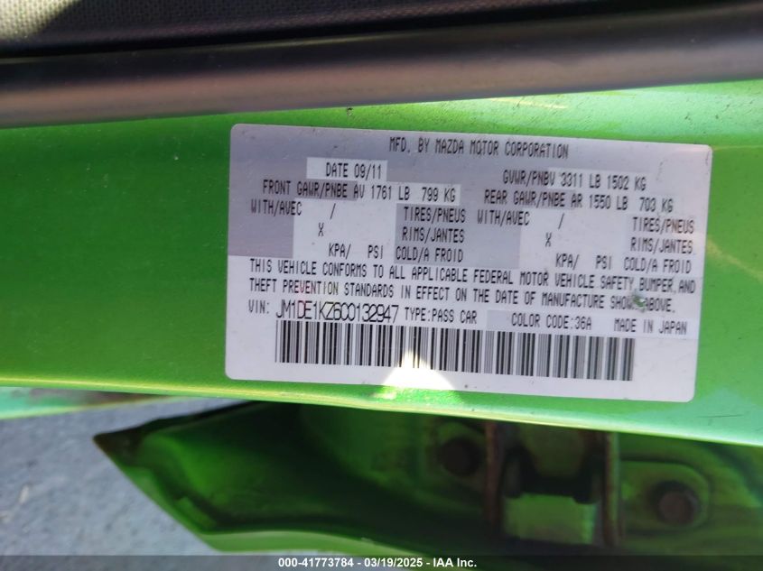 Color GreenCylinders 4Drive Front wheel driveVIN JM1DE1KZ6C0******State Run & Drive VerifiedDamage Rear leftAuction date 2025-03-26 AutoRIA